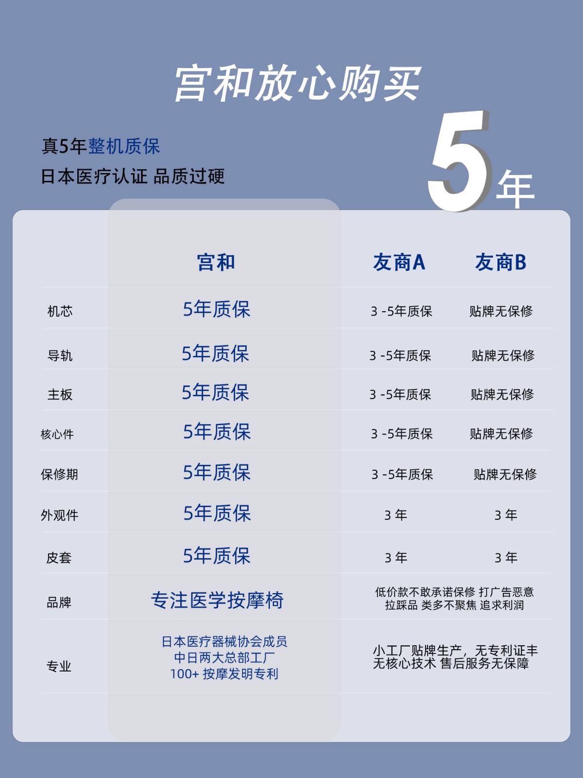双十一购物最怕 “售后无保障”,而宫和 5218D 给出了远超行业标准的承诺:通过日本 JIS 医疗认证,核心部件享受 5 年质保,汽车级钢材骨架让使用寿命长达 10 年 +。对比同价位产品 “1-2 年质保” 的常规操作,宫和 5218D 的品质保障堪称 “诚意满满”,双十一入手,不仅省了当下的钱,更省了未来的 “维修焦虑”。