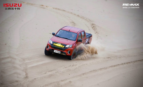 在赤峰翁牛特沙漠的原始赛道上,RE-MAX直面松软沙地的严峻考验。其所搭载的4JD2低速高扭发动机,功率达110kW,扭矩提升至400N·m,配合手自一体8AT变速箱,在沙地中展现出卓越的瞬间爆发力与持续脱困能力。面对扬沙环境,车辆配备的三级旋风式风沙过滤器发挥关键作用,有效守护发动机在沙尘环境下的“呼吸健康”。